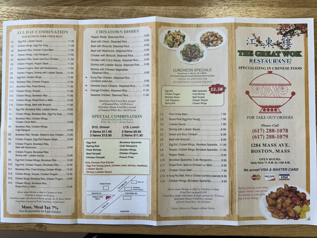 The menu at Great Wok Restaurants offers a straightforward selection of familiar Chinese dishes, perfect for casual dining or quick takeout. The style leans toward comforting, satisfying meals that invite you to enjoy familiar flavors without fuss or complexity.